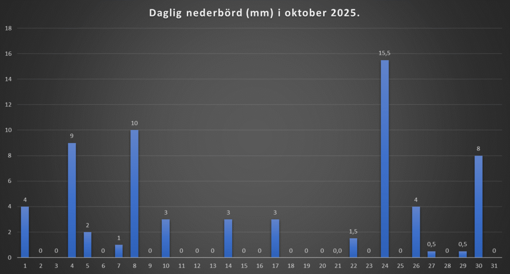 En mulen och grå dag med regn hela dagen. Vi behöver regnet, men samtidigt är det trist när det kommer sådana här höstdagar med dåligt dagsljus.
