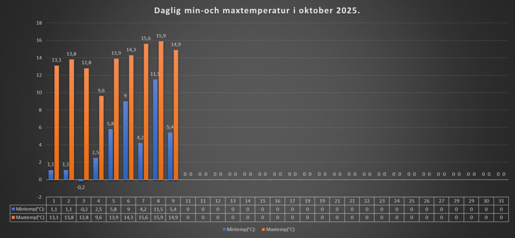 den lägsta temperaturen blev +6,4 grader, och den högsta blev +14,8 grader.