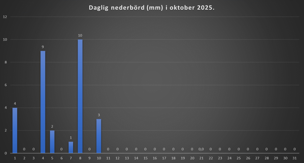 Igår kväll började det regna, och höll på några timmar. Idag har vi haft en fin höstdag, med sol från molnfri himmel. Under senare delen av eftermiddagen, drog det upp lite tunna molnslöjor.
