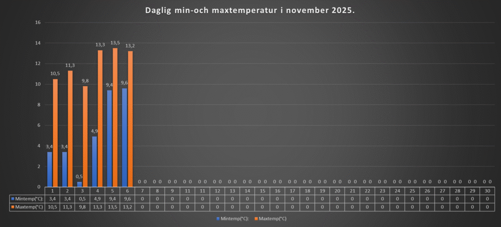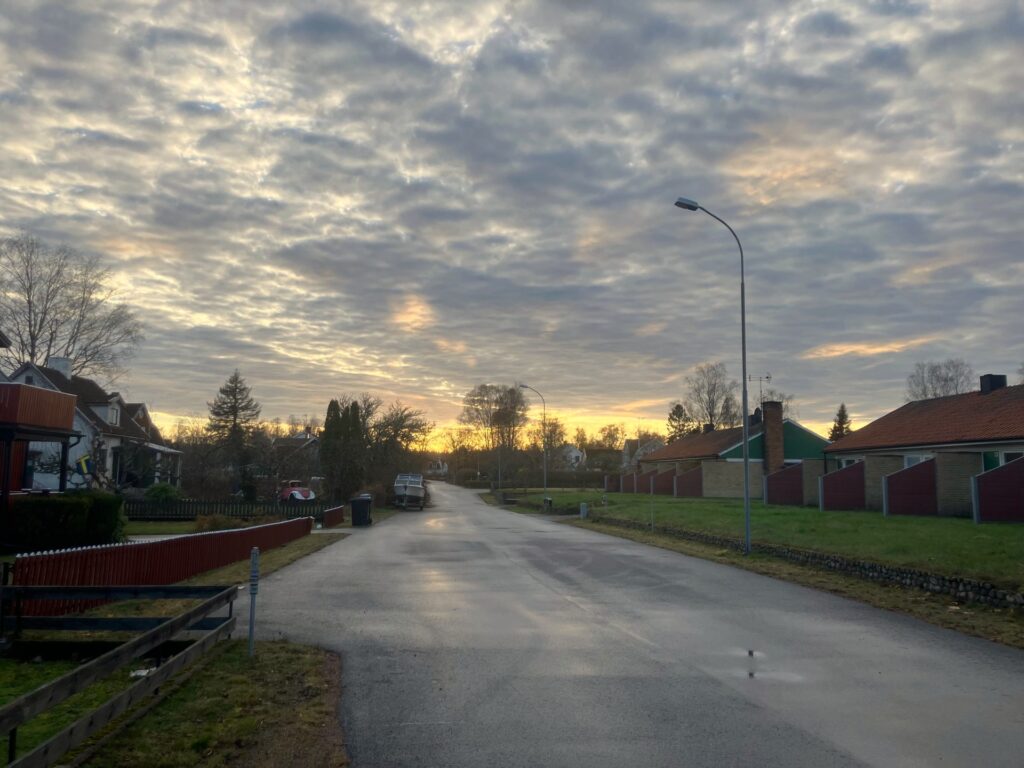 Under efternatten började det regna. Regnet fortsatte en stund på morgonen, och lite lätt regn till och från under förmiddagen. Efter lunch så har molntäcket spruckit upp, och solen har skickat några strålar till oss.