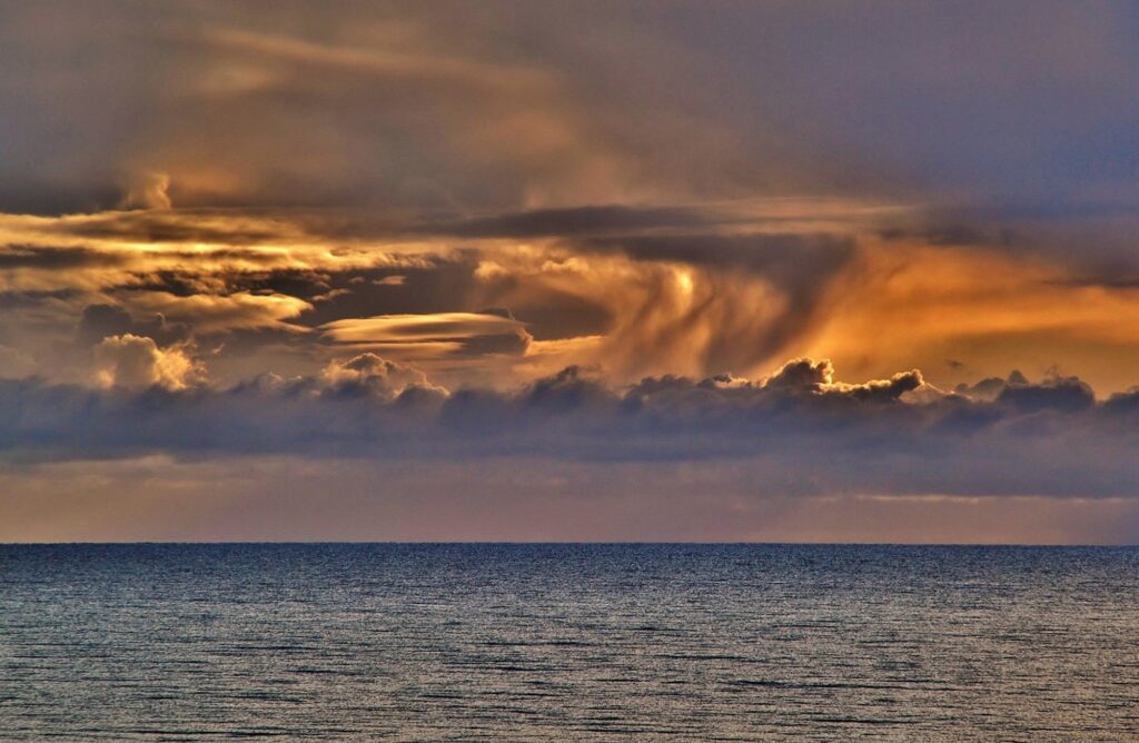 Vid soluppgången idag, var det halvklart, och vi fick lite solglimtar på oss. Därefter kom molnen snabbt, och resten av dagen har varit mulen och grå. Vis 15-tiden började det regna också. Fortsatt milt väder idag också.