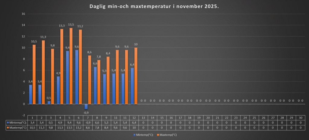 Nederbörd: 0,5 mm