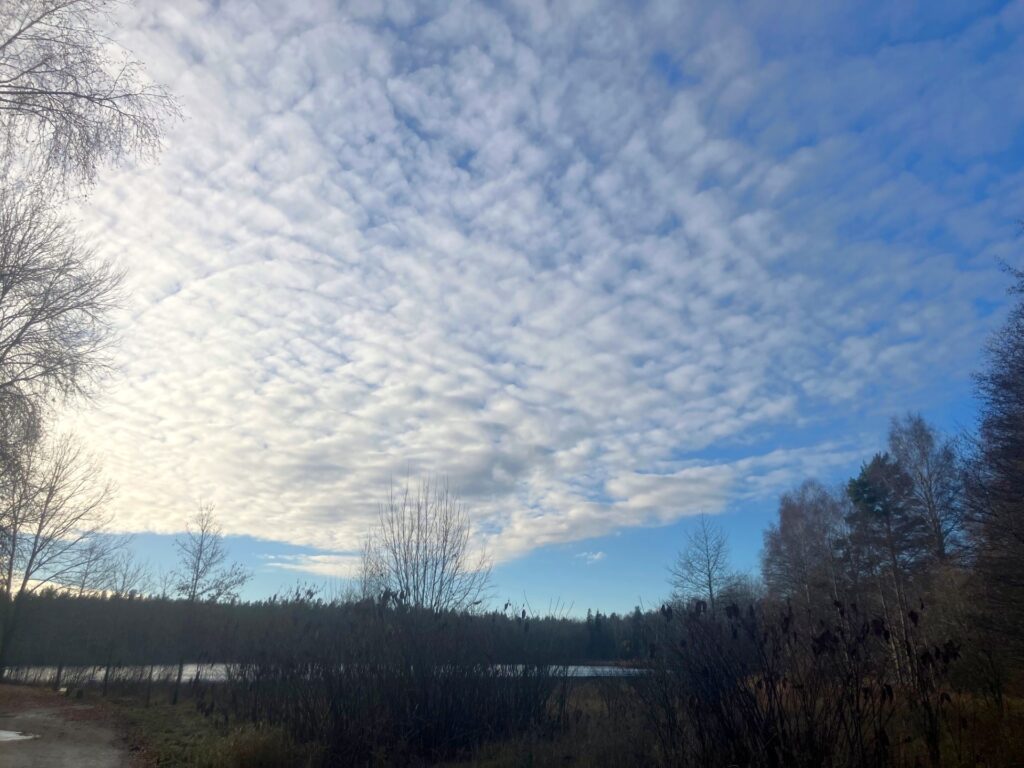 Igår kväll, så kom det lite regn. Molnen hängde kvar på morgonen, men sprack upp ganska tidigt. Temperaturen föll lite grann, och det frös till på vägarna, med ishalka som resultat. Dagen har varit solig, och nu i kväll är det helt molnfri himmel, och fallande temperatur.