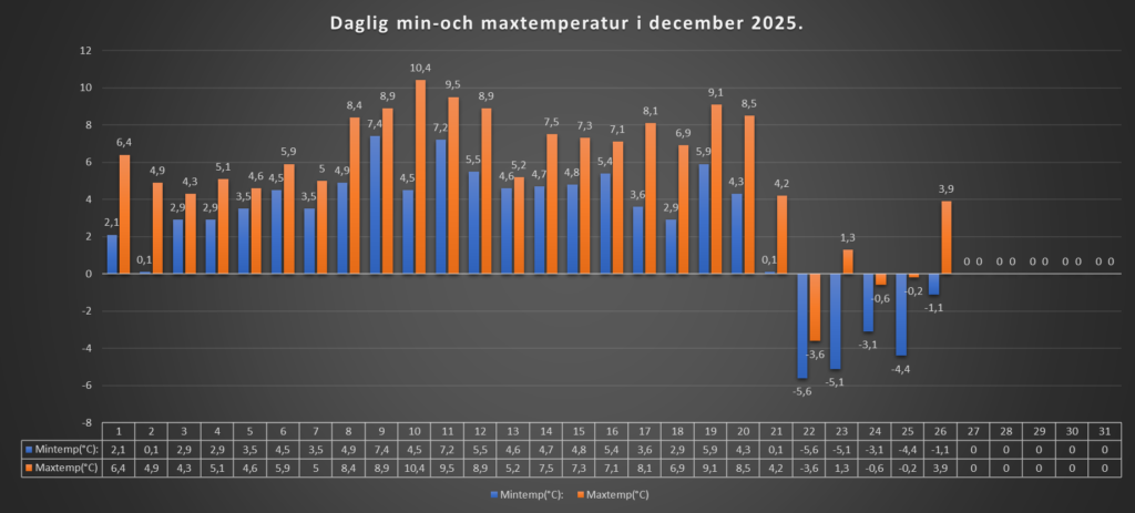 Annandagen bjöd på sol från helt molnfri himmel hela dagen. Några plusgrader var det också, och solen värmer lite, trots att vi är i december.