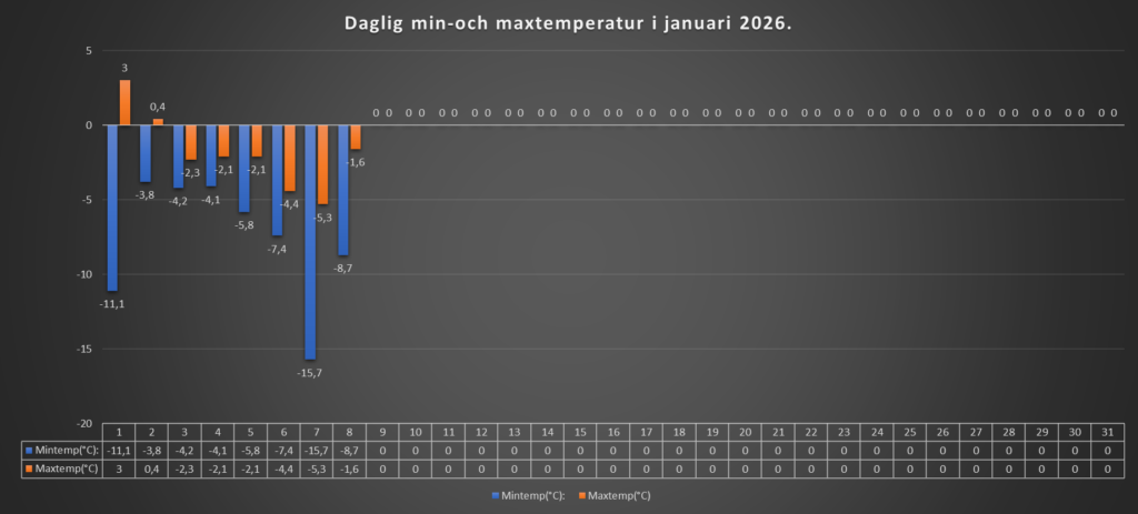 En hel del sol idag, bara lite lättare moln av och till. Inte så kallt heller, några minusgrader både dag som natt.