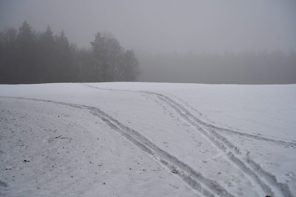Lördagens väder blev mulet, grått och dimmigt. Fortsatt plusgrader dygnet runt, och snön sjunker sakta ihop.