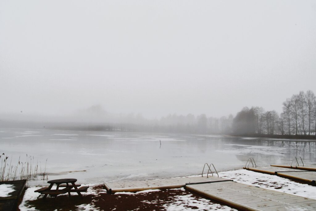 En mulen, disig, dimmig och grå dag har vi haft. Tidvis har det regnat också. Regnet tillsammans med plusgrader dygnet runt, skyndar på snösmältningen.