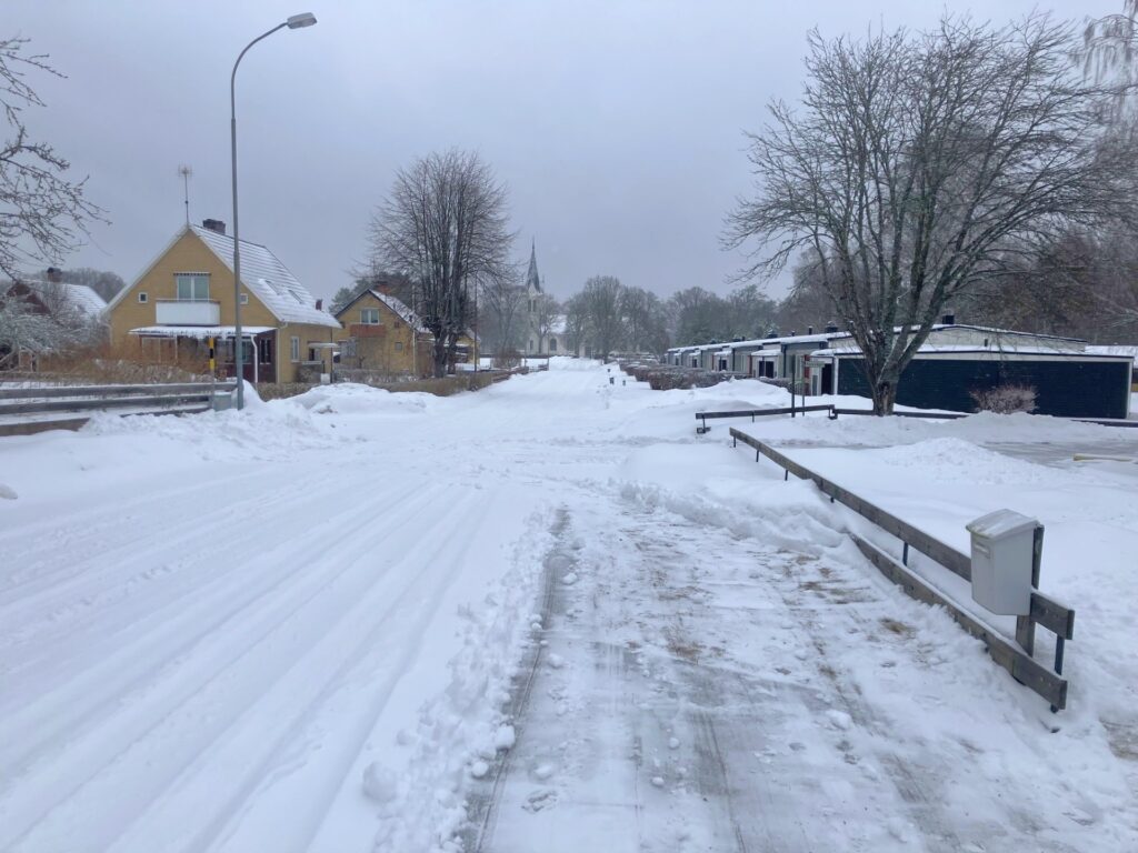 Fredag eftermiddag på Kyrkogatan efter skottning av snön som kommit idag.