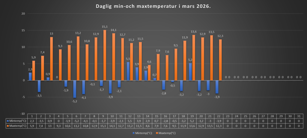 I stort sett en repris på gårdagens väder. Kall natt med flera minusgrader, och en solig dag med lagom vårvärme.