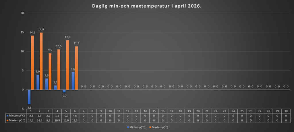 Väderdata från kl.18.00 igår, till kl.18.00 idag:
