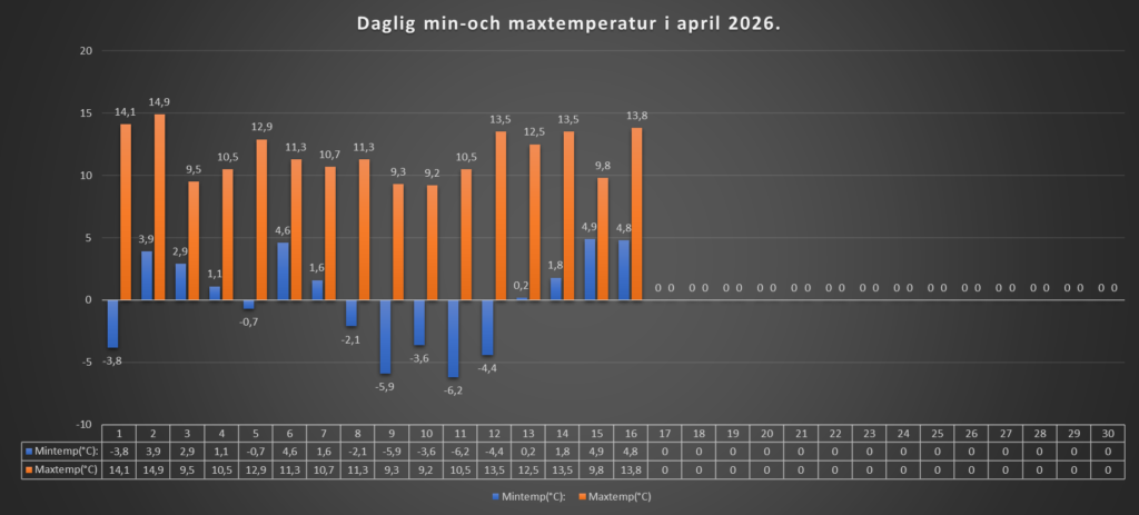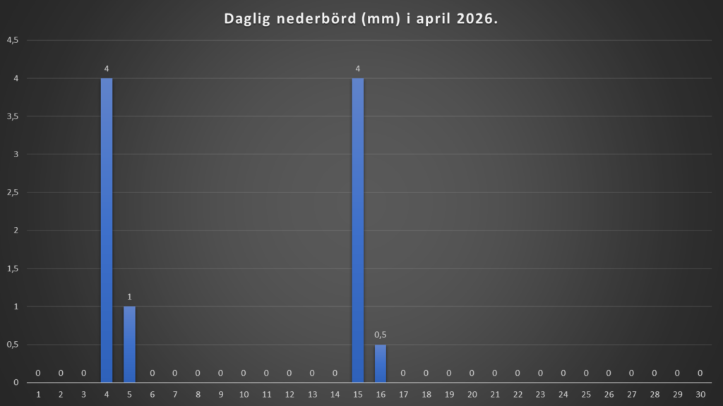 Igår kväll kom det en kortvarig regnskur, och den finns alltså med i sammanställningen här idag.