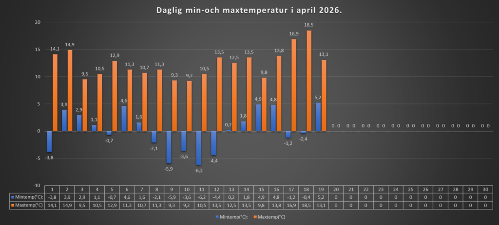 Väderdata från kl.18.00 igår, till kl.18.00 idag: