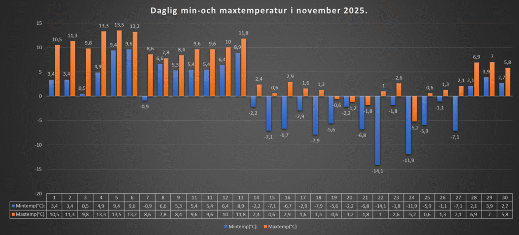 En mulen och grå Första Advent. I eftermiddag så kom det duggregn också. Novembervädret visar sitt mörkare ansikte idag!